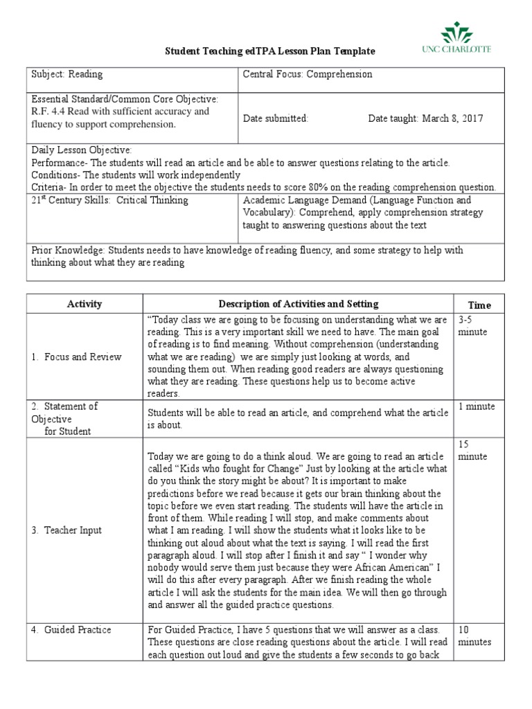 Edtpa Lesson Plan Template 2017 Luxury Edtpa Lesson Plan Example 2017