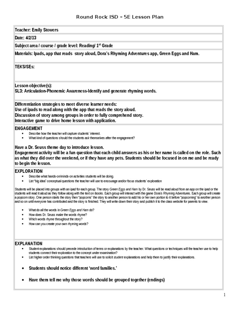 5e Lesson Plan Template