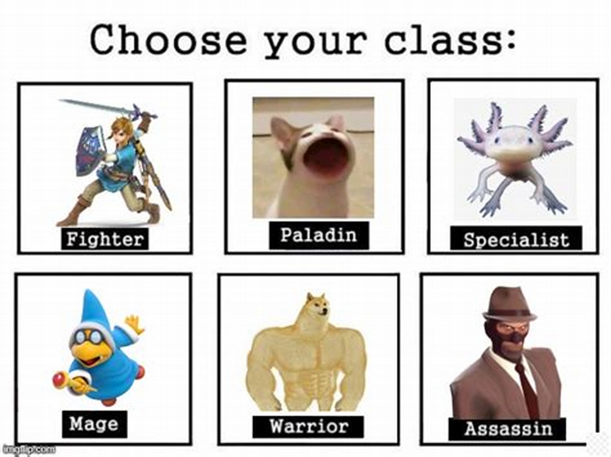 The ultimate team Choose Your Class Funny gaming memes, Dark humour