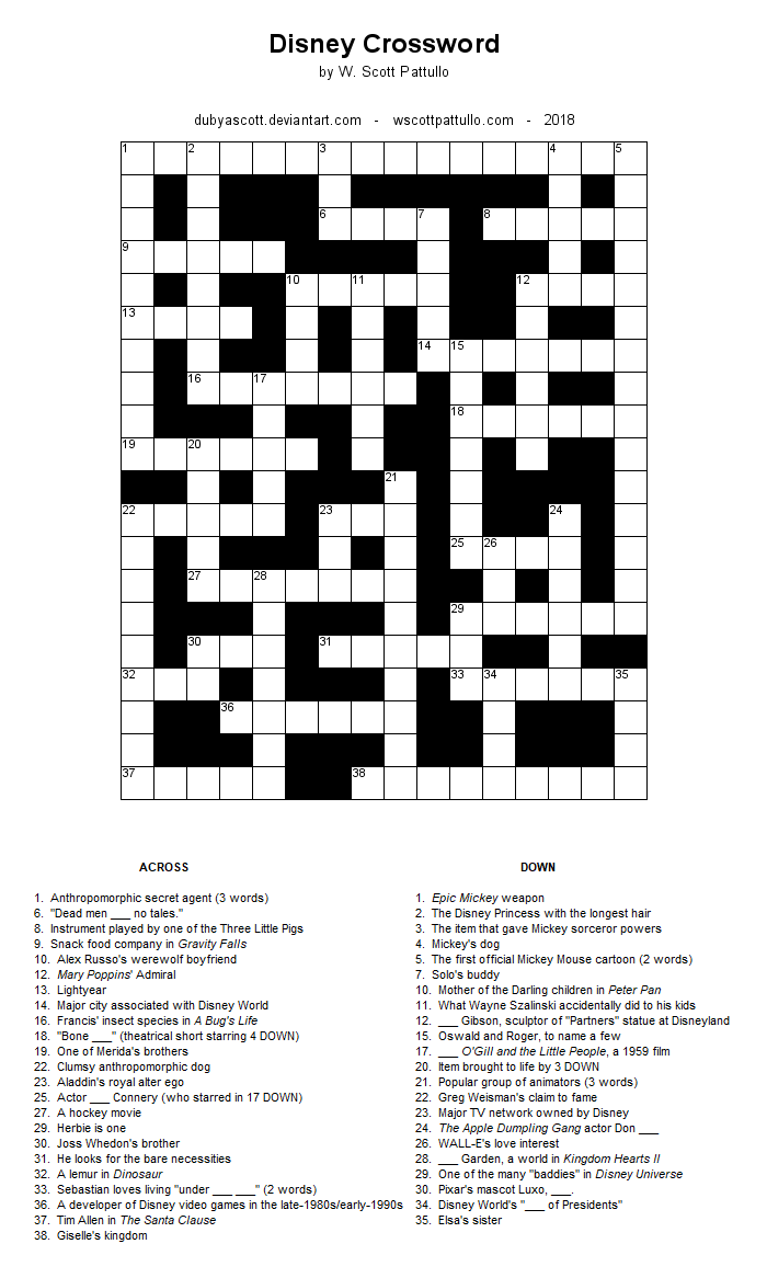 Disney Crossword W. Scott Pattullo Wiki Fandom