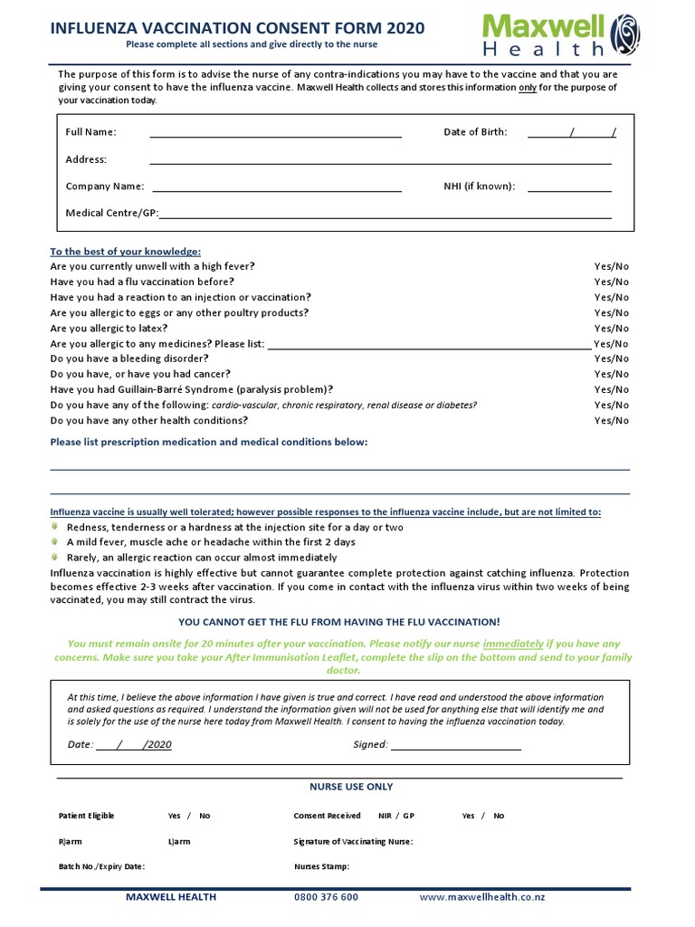 Influenza Vaccination Consent Form 2020 To the best of your knowledge