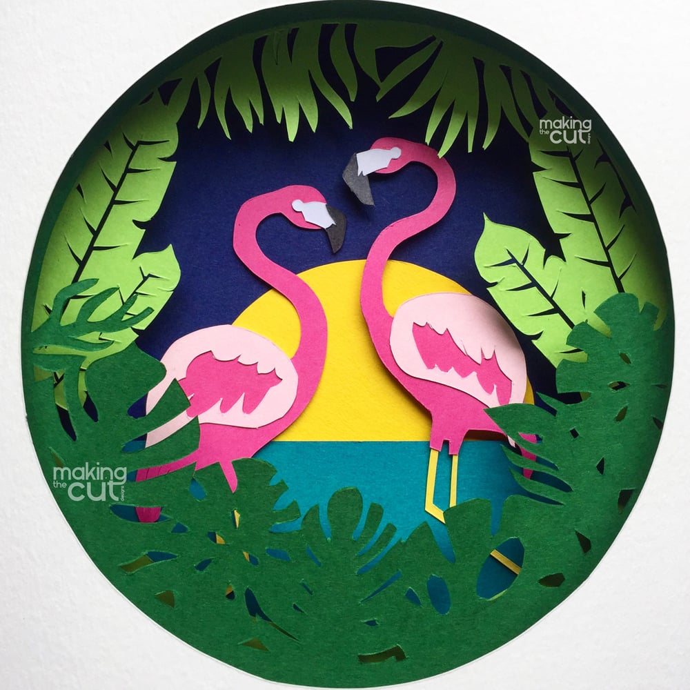 MakingTheCutDesigns — SHADOW BOX PAPER CUT TEMPLATE FLAMINGO LOVE