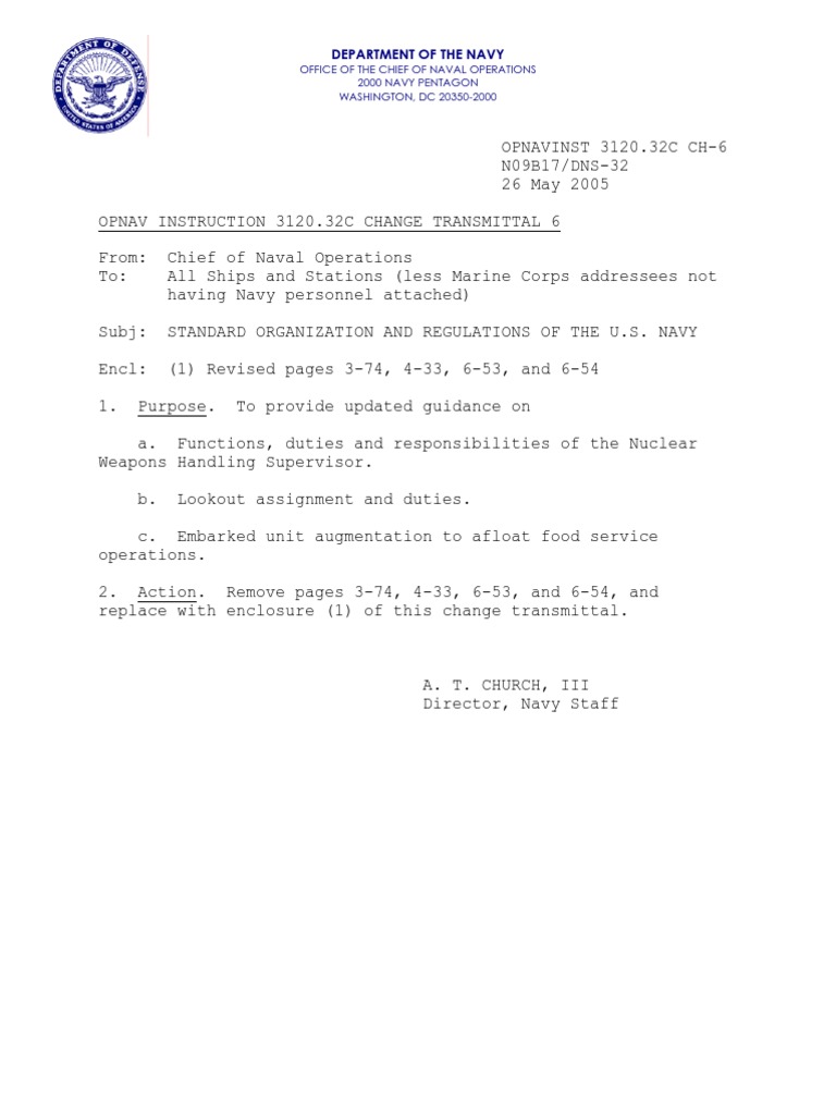 opnavinst 3120.32C United States Navy Executive Officer