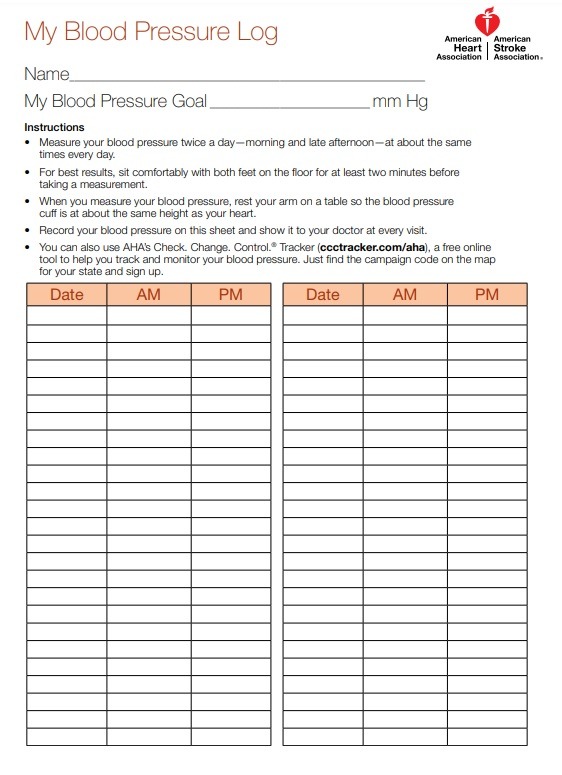 The health care professional will slowly let air out of the cuff while listening to your pulse with a stethoscope and watching the gauge. You can use many templates online to create your blood pressure log. All our blood pressure logs are free and easy to use!