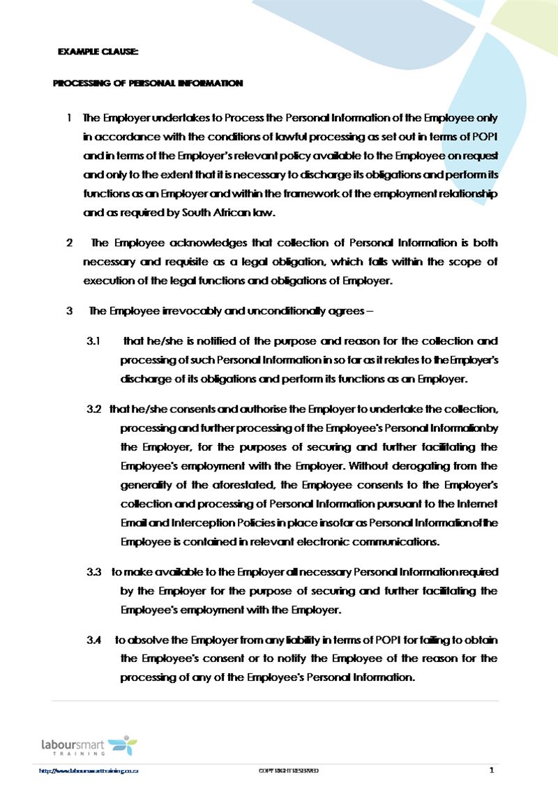 POPI Example Clause, Document, Labour Law, South Africa, Download