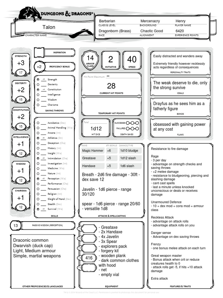DnD character sheet template Role Playing Gaming