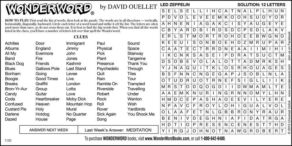 Wonderword on Twitter "Led Zeppelin puzzle. Sunday WordSearch
