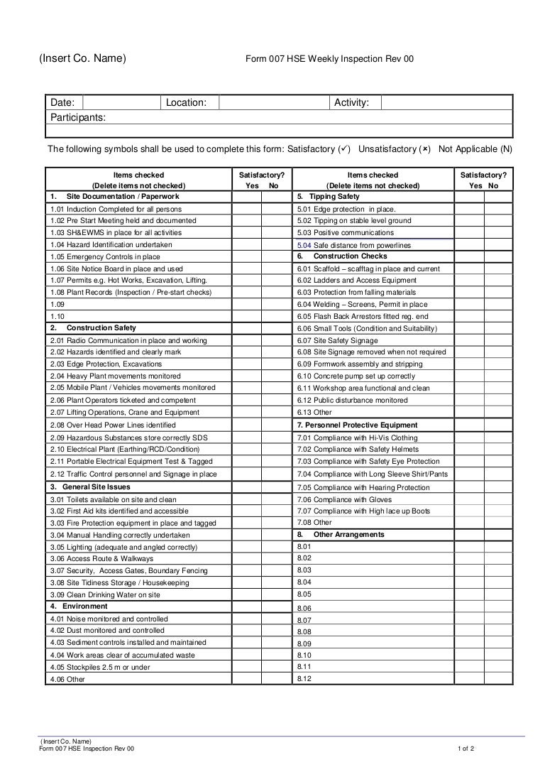 Form 007 HSE Weekly Inspection
