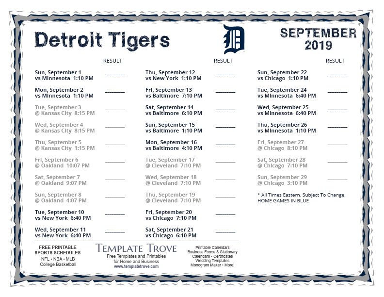 Printable 2019 Detroit Tigers Schedule Detroit tigers, Detroit tigers