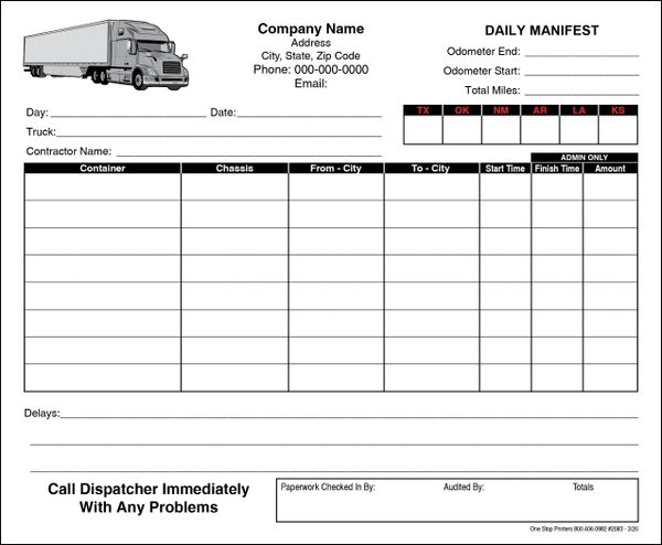 Truck Driver’s Daily Manifest, Driver’s Daily Pay Sheet One Stop