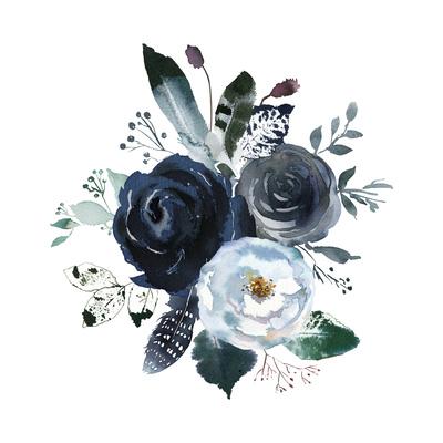 Watercolor Floral Wreath Roses Peonies Leaves Boho Grey Navy White